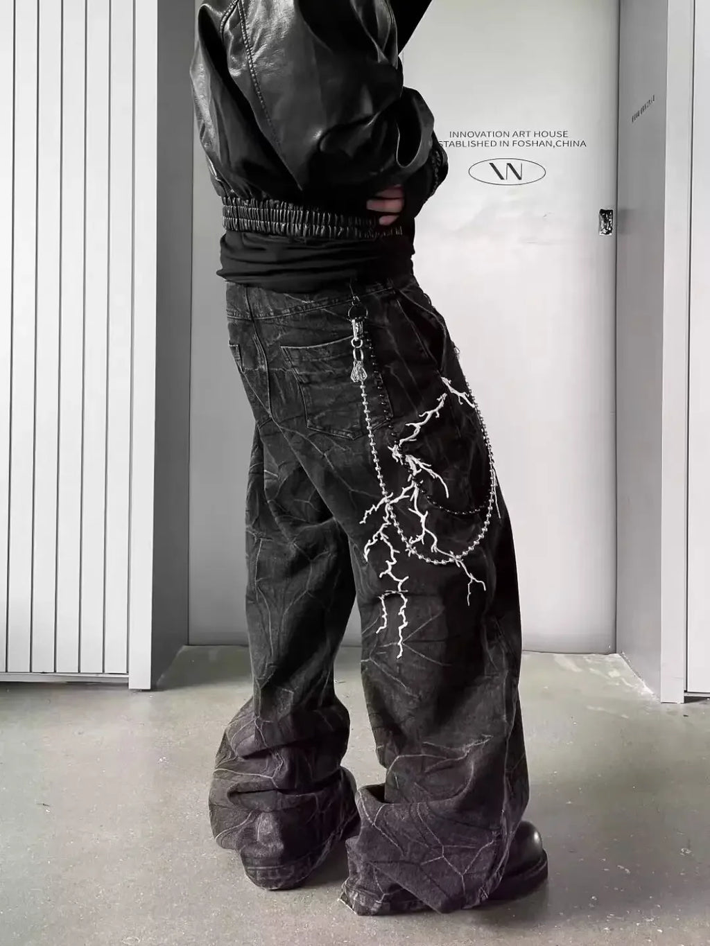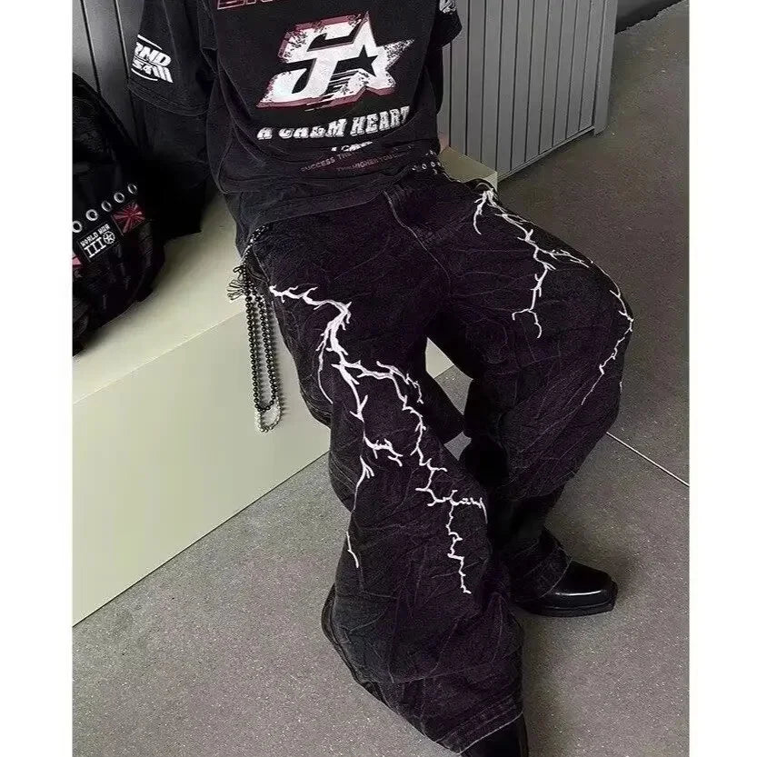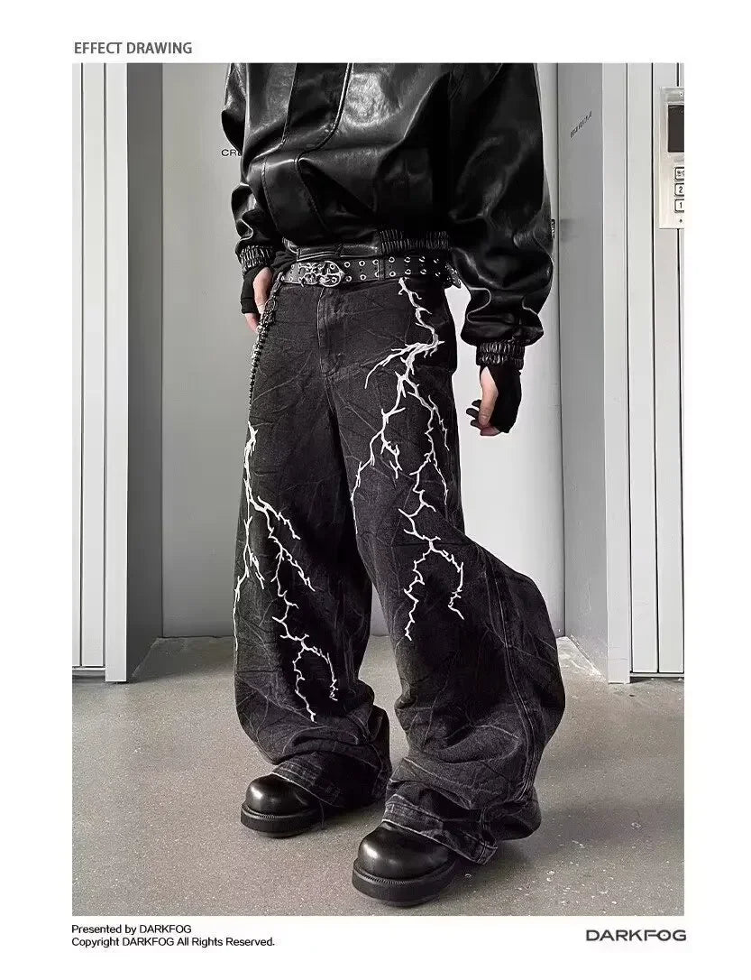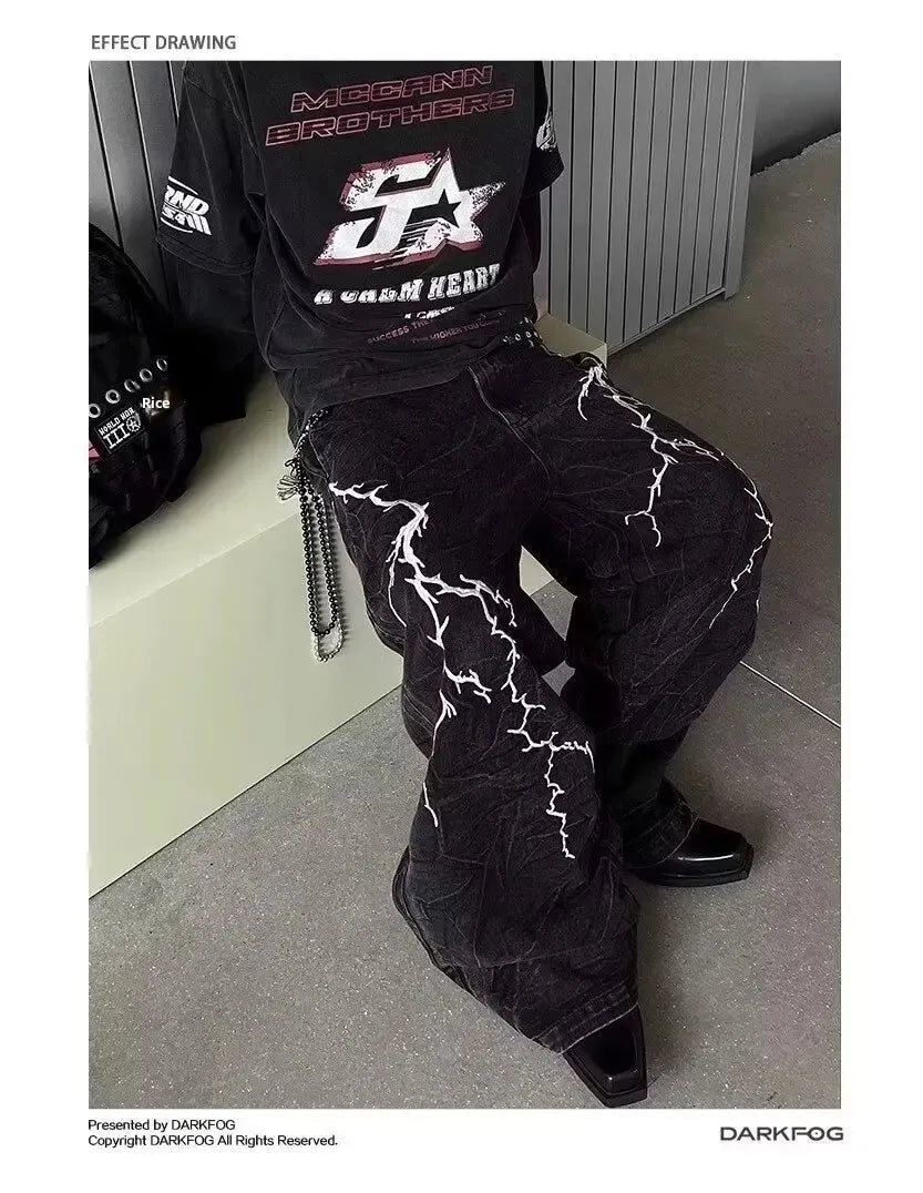Com um ajuste solto e perna larga, ele oferece conforto e um visual marcante, perfeito para quem busca autenticidade e exclusividade. O bordado relâmpago adiciona um toque único, transformando cada passo em uma afirmação de confiança.